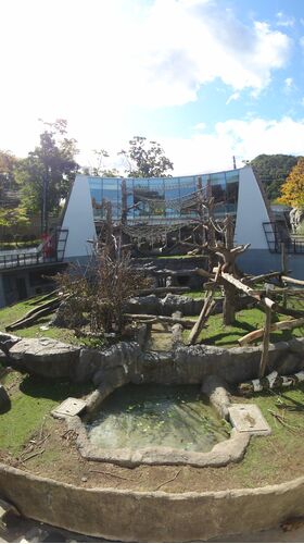 さて引き続き円山動物園について。 続いては猿山へ。 自由に遊べるような造りになっているが、基本猿たちは下でダラダラしてた。 昼休み? オランウータン。老婆のようだ。 こちらはハンモックでお休み中。 この猿は何だったかな・・キツネザルの仲間だった…