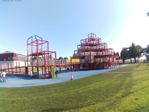 深川から隣町の秩父別へ移動。 道の駅で昼食&休憩。 売店は小さいが、温泉とレストランがあり、かなり賑わっている。 暑さにやられて若干グロッキー気味だった子供も、ご飯を食べて休憩して元気が回復。 道路の向こう側にある遊び場へ。 日本最大の屋外遊具…