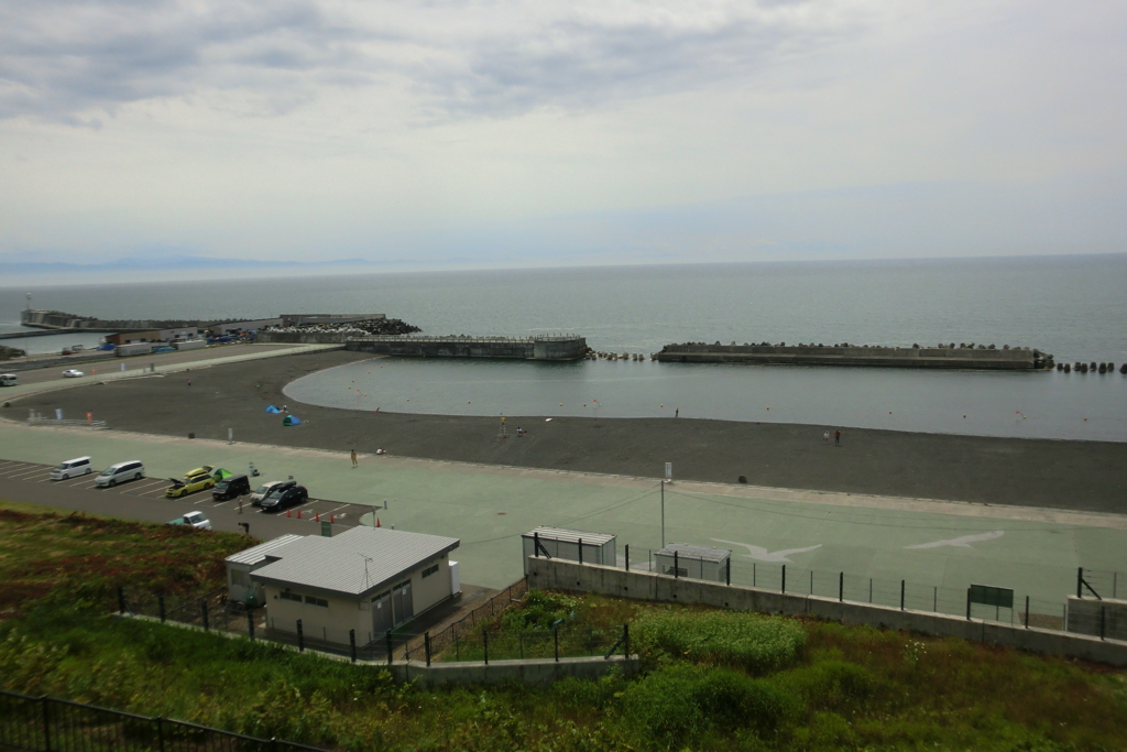 2016-08-30 海と山に囲まれた石狩市 - 厚田 - 石狩市 さて、石狩市だが1996年に町から市制となる。 さらに2005年に厚田村と浜益村を編入し今の形となった。 両村は現在地域自治区として厚田区、浜益区と呼ばれている。 その厚田区を国道231号沿いにずっと海を見ながら走ると観光案内所がある。 この辺りは高台になっていて漁港や海浜プールを見下ろせる。 夕日が有名だが昼間もなかなか。 ・・・天気が良ければもっといい景色なんだよ。 いつ行ってもライダーがいっぱいいる。 さて、観光案内所の道路を挟んだ向かいには厚田公園と 悪名高い「恋人の聖地」がある。 鐘がある。 海が見える。 飛び出せ青春!!