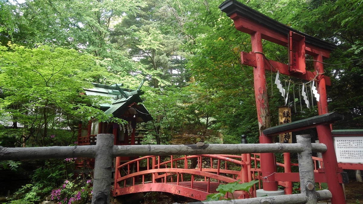 道を下って行くと池があり、そこには縁結びの弁天神社。