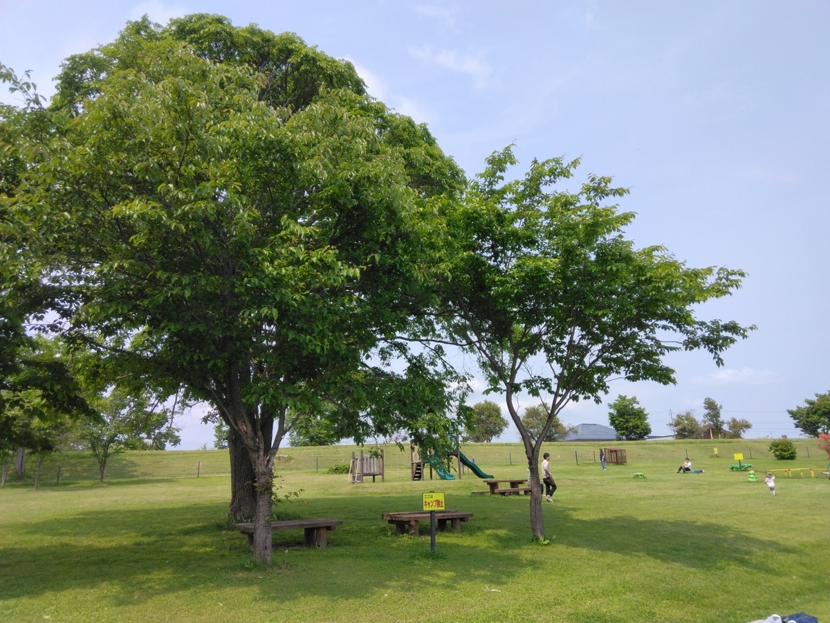 遊具の近くは設営禁止だが、それ以外はテントサイト。
