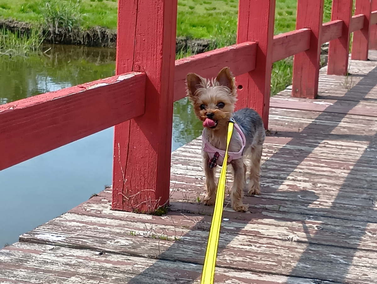 橋は意外と長くて、小さな犬には結構な距離。