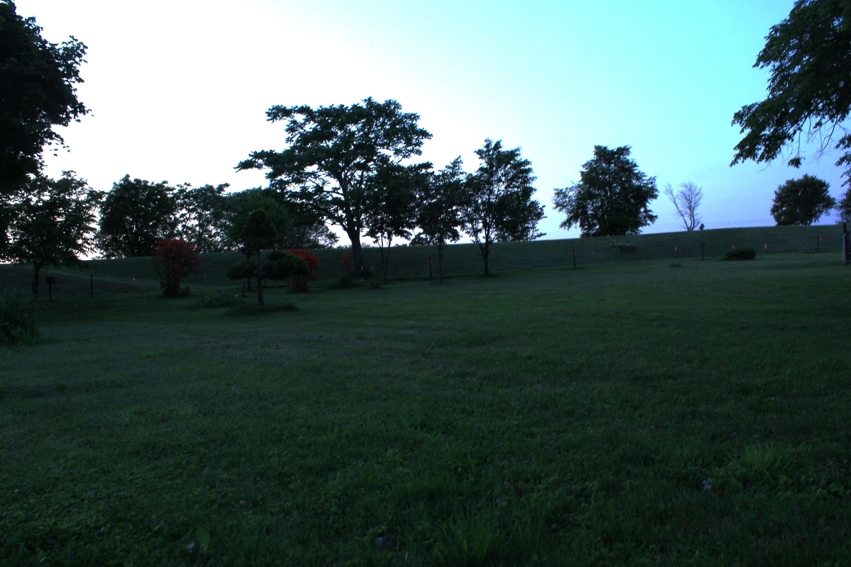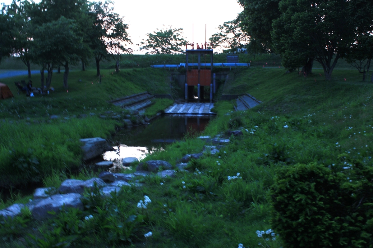 対岸には早朝からフナ釣りの人がやって来るので、静かに寝たい人はこちら側にテントを張る方が良いかもしれない。